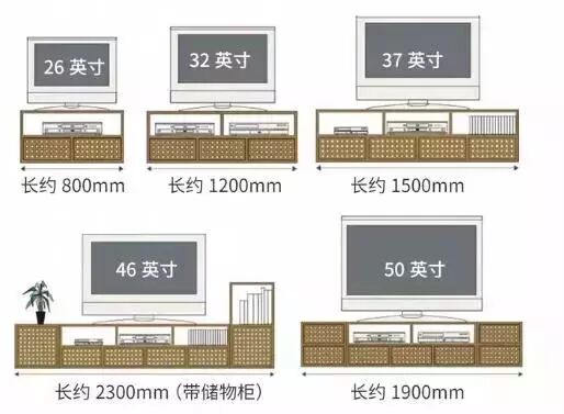 沙发与电视柜之间的距离不同,其电视的选择也是不一样的,具体相对应的尺寸如下: