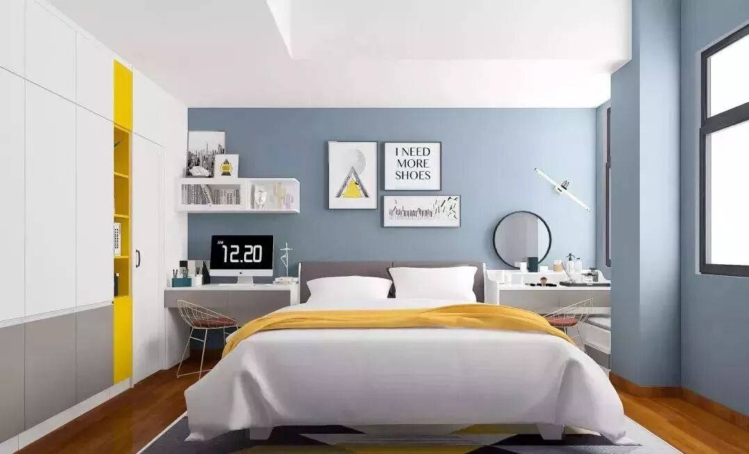 浅蓝色通常能够给人一种清新素雅的感觉,同时蓝色能够让人安静下来,所以蓝色的墙面装饰色调,也更能衬托出一种静谧祥和的生活气氛。