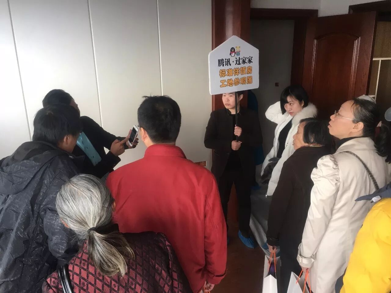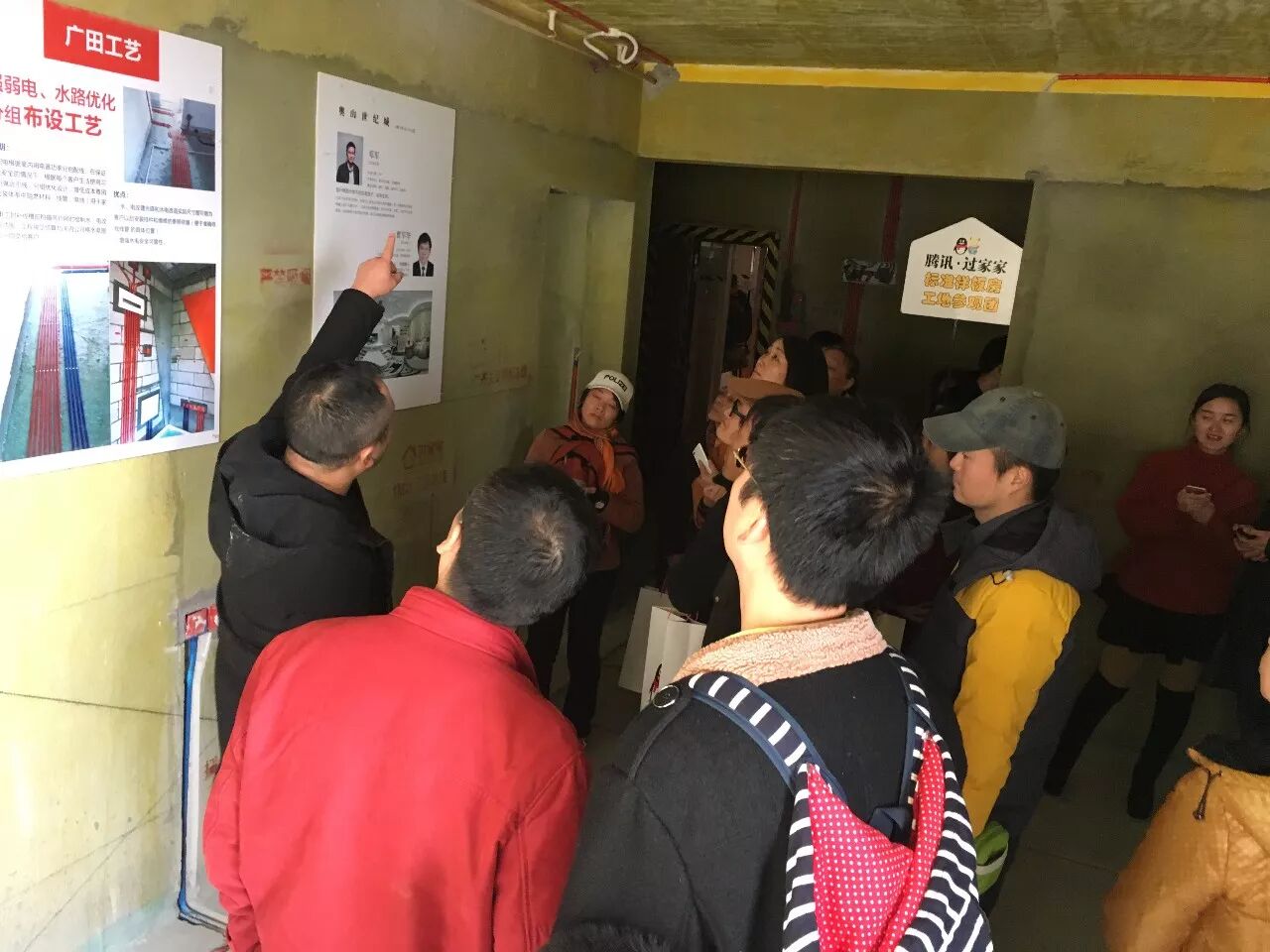 有着16年家装经验的腾讯·过家家-工程部钟文广经理被求知若渴的业主们团团围住,大家认真听取装修知识。