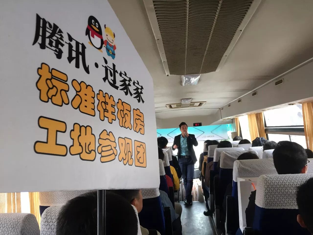 应邀报名的二十多组家庭将50座的大巴车坐得满满当当。腾讯·过家家-交付体系的徐长洲徐总,在途中给大家讲解基础装修知识以及唯交付不辜负的企业理念!