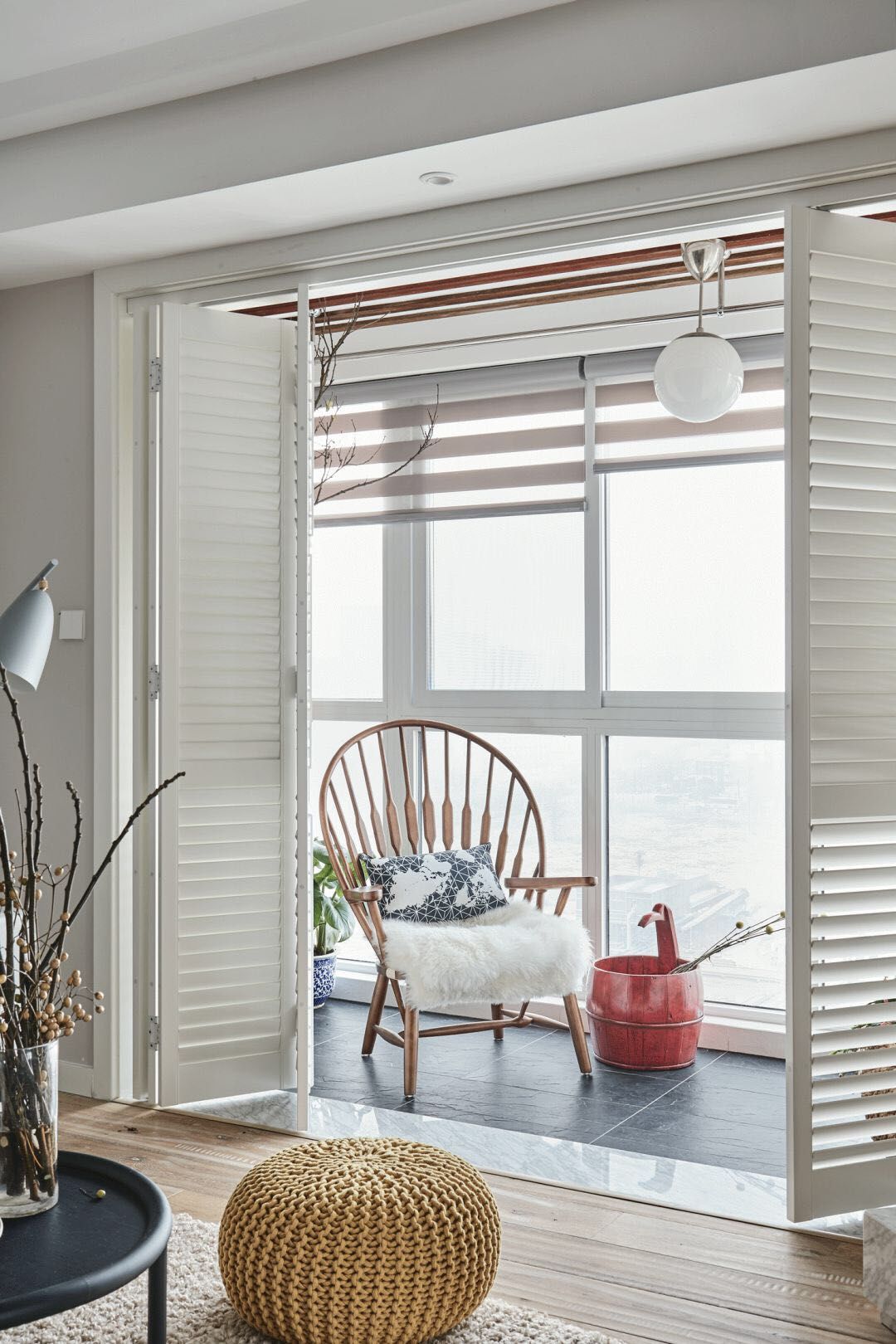 如果你喜欢一个独立的空间,又不想的光线过暗,可以用单扇门同时在旁边加多一个窗户,这样就可以不影响室内的光线,也可以在阳台上有个私密的空间。