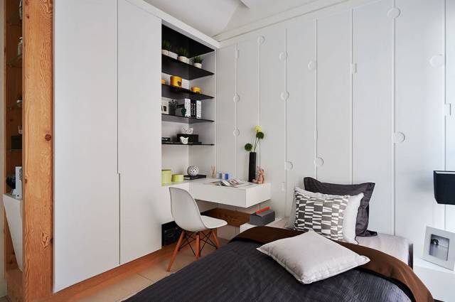 想要小卧室容下多种功能,组合型家具格局是最好的办法。小空间,却功能齐全,一点也不输给大空间卧室。