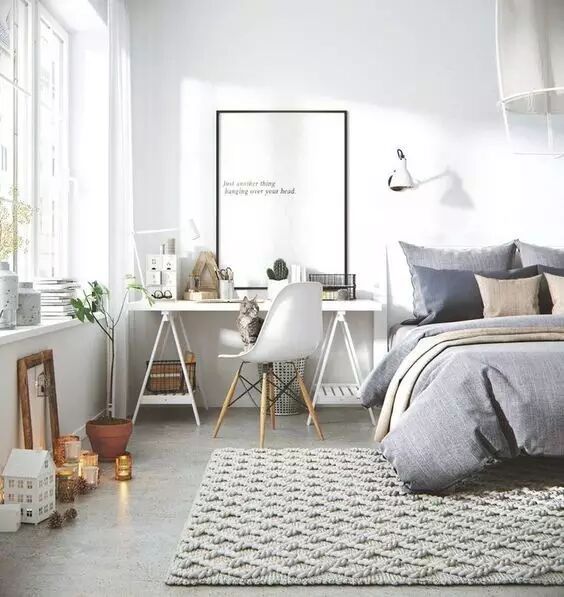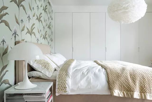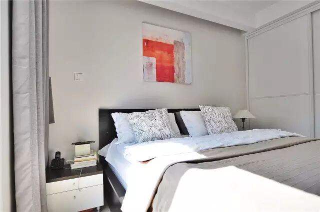 在选择浅色的卧室主色调时,最简单的方式就是做到大面积的留白。白色简约显大,而且相对来说装修材料和装饰上更省事。