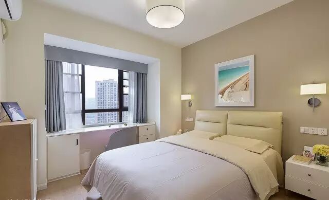 跟穿衣服的原理一样,深色显瘦,浅色显胖。太过深沉的颜色,会让卧室空间更显压抑和狭窄,浅色亮度高,明亮的色调让空间显宽敞。
