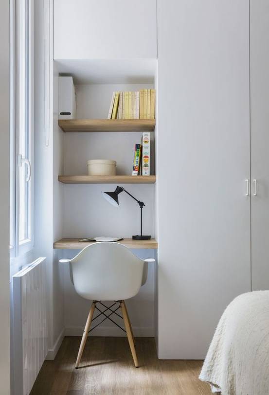 将原本是窗户的角落位置,通过改造成窗户和办公区两用的区域,这种将空间和功能组合的方式令人惊艳。