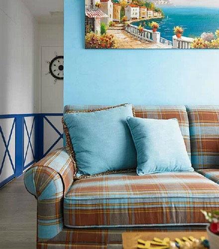 客厅选择了明度高的蓝色,清新亮丽。蓝色是很柔和的颜色,家居室内首选哦~浪漫的新婚气息轻轻柔柔。