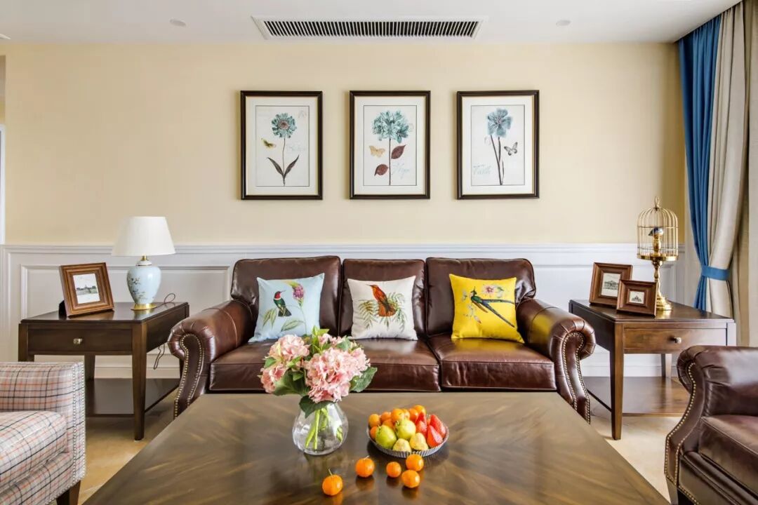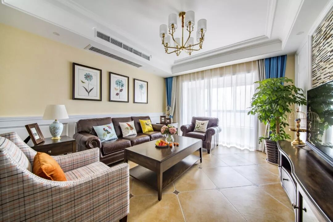 这个三室两厅的住宅空间,设计师采用美式风格作为整体的基调,用简洁明快的色彩来渲染一种休闲放松的空间环境。将很多自然元素和复古元素巧妙的运用空间中,有一种乡村的古朴气息。