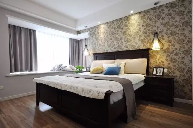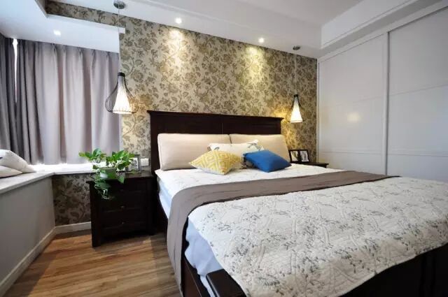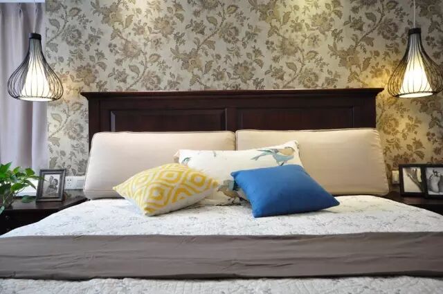 主卧使用美式风格为主,相对于中式的端庄含蓄,美式更偏向轻松休闲的居家氛围,作为想要追求此特点的业主而言再适合不过了~