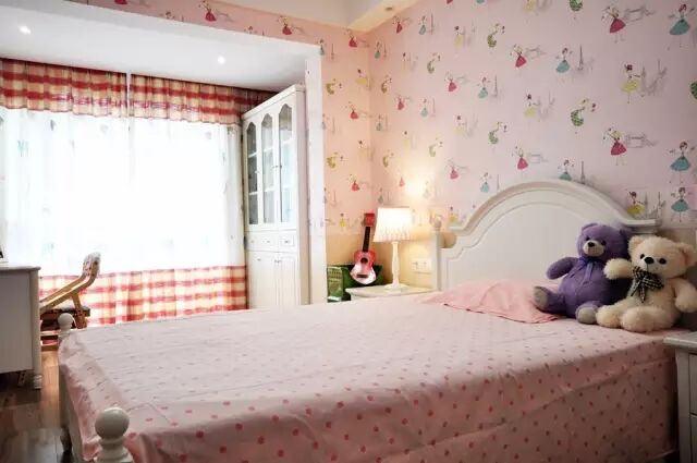 粉色应该是所有“小公举们”心中最偏爱的色彩了吧,小孩房采用粉粉的壁纸以及白色的家具的搭配,营造出一个非常童趣的梦幻空间~