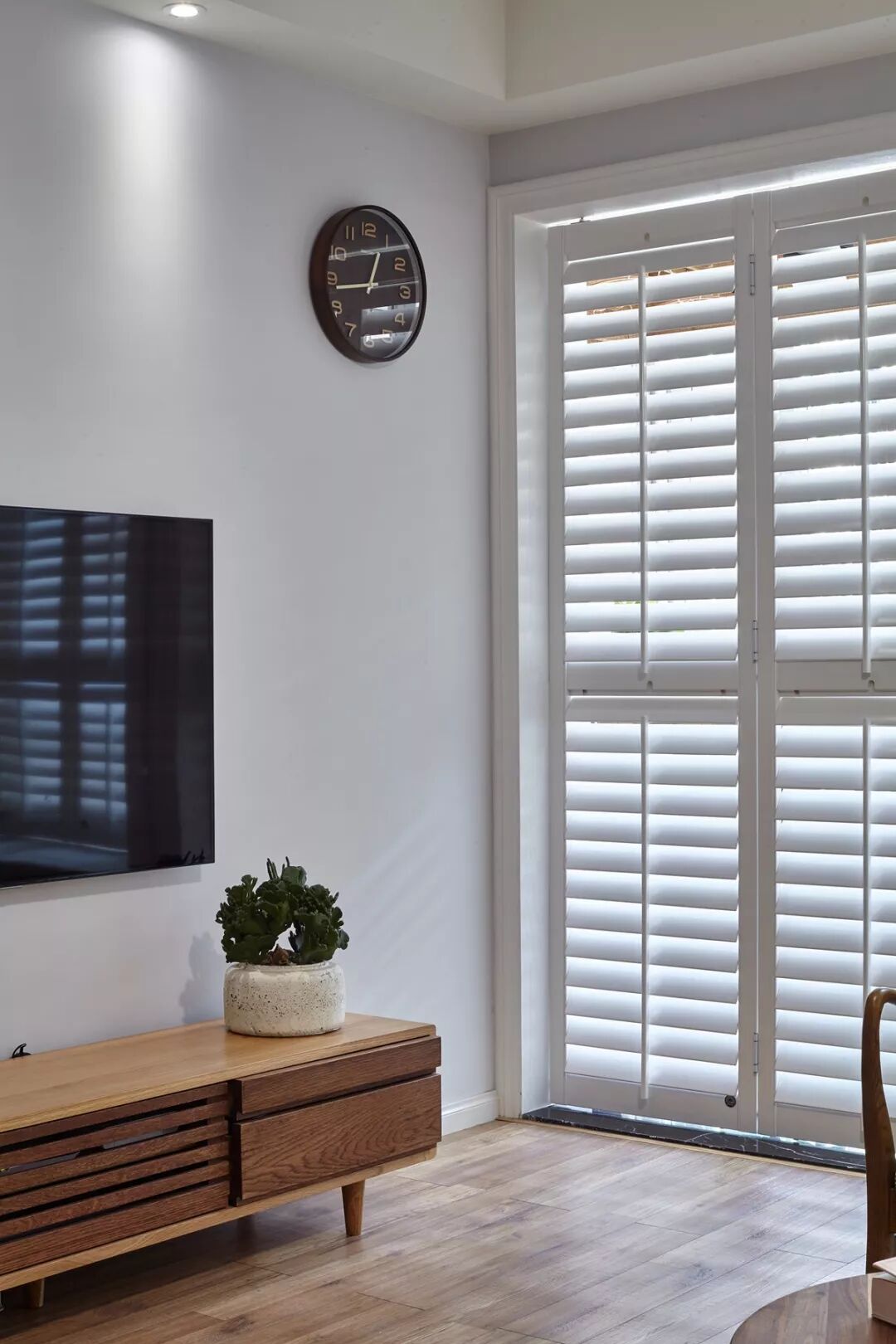 百叶窗的窗户的,若隐若现地透着一丝丝的光线进入,让客厅的层次感更加丰富而又清新舒适。