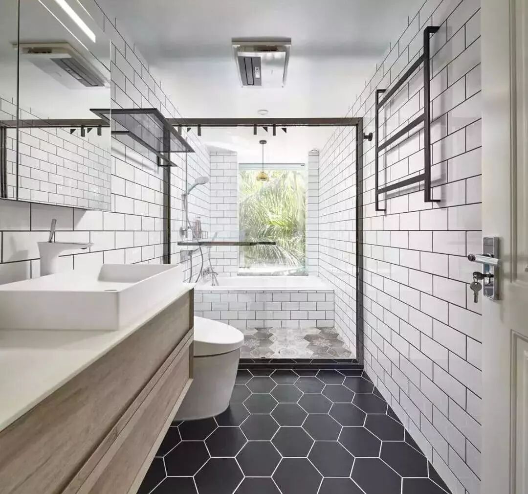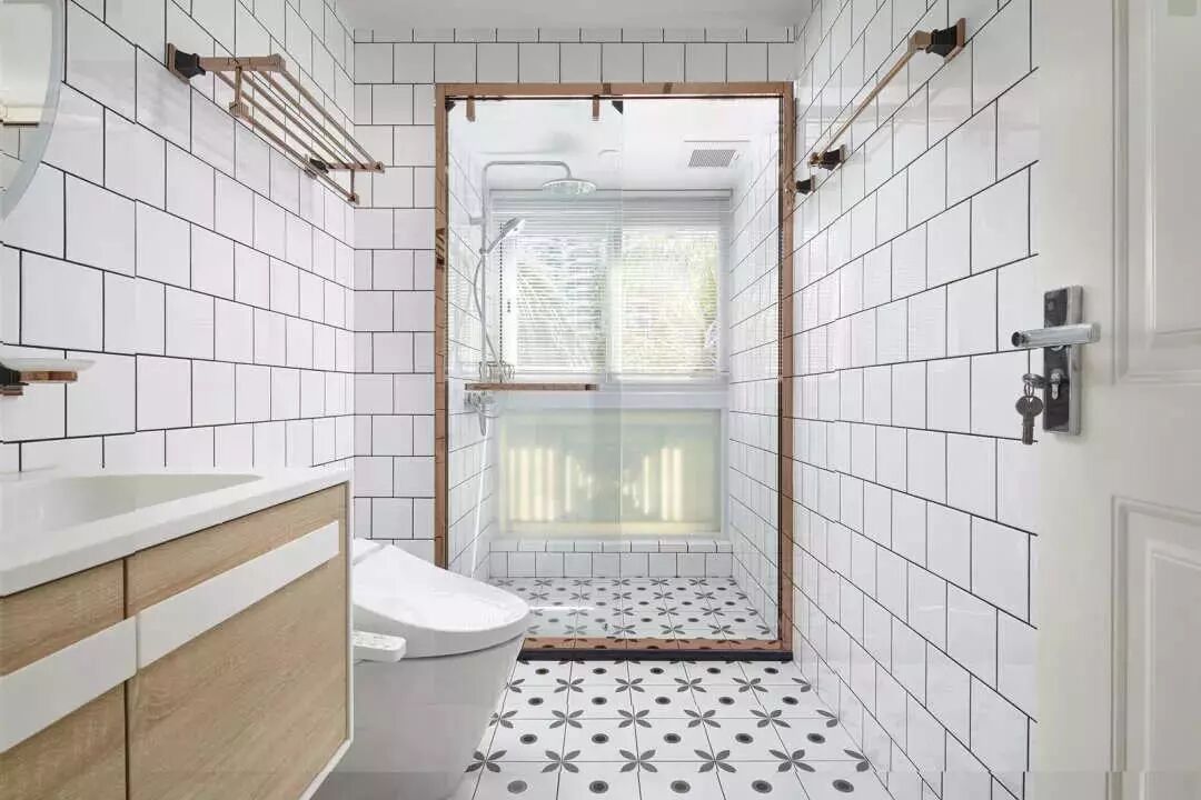 ▲两个卫生间,前主卫,后次卫,都是黑白与原木的搭配,显得特别的清爽整洁。透明玻璃隔断的干湿分区,既增强视野和光照,让小空间多了一点层次和趣味。