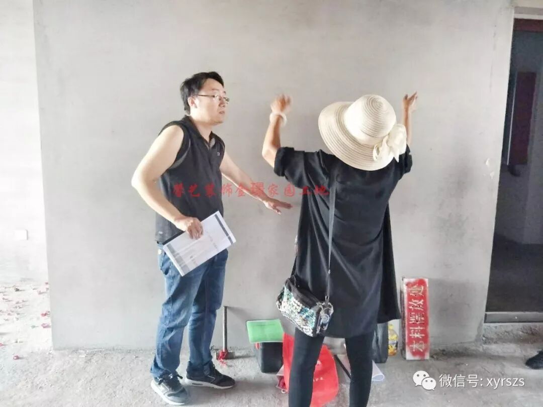 开工仪式结束之后,设计师现场给业主讲解室内物品摆放情况以及插座开关位置等具体事项。设计师、业主、监理三方对于新家的具体施工方案进行探讨和交流。