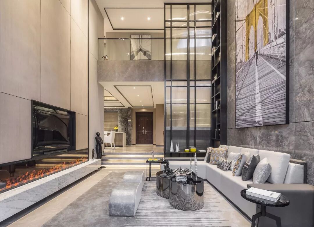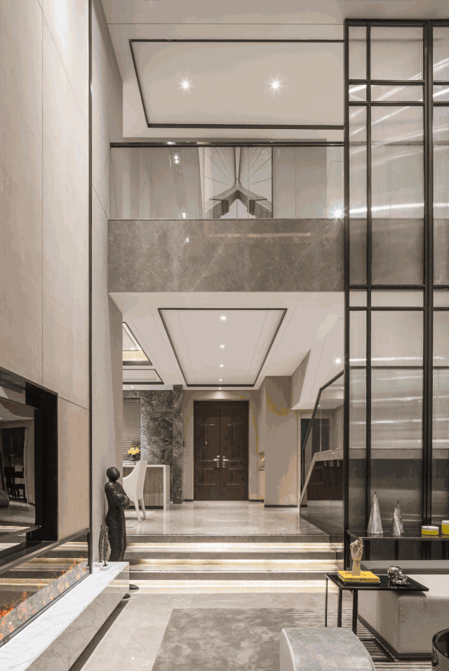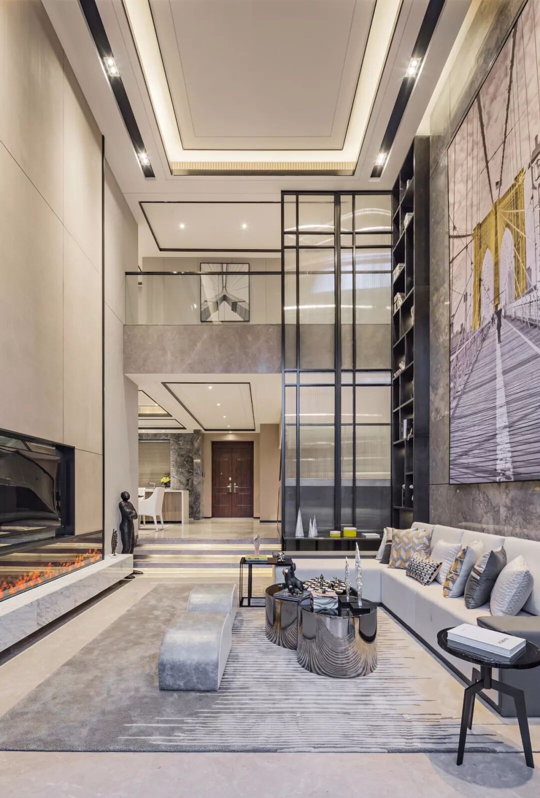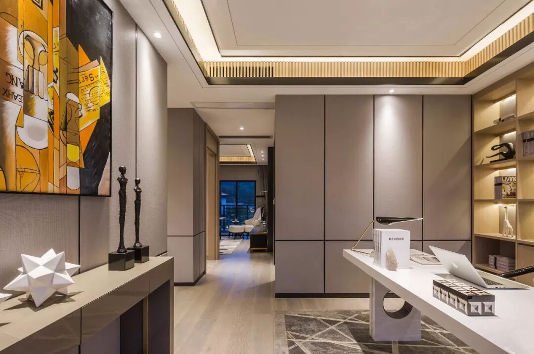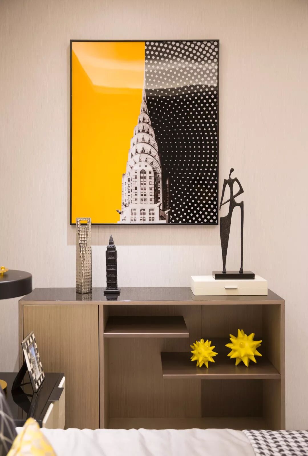 高级灰散发出的静臆气质,源于其与生俱来的低调和优雅,设计局部的点缀一抹亮黄色,为空间营造出一种稍微欢快轻松的色彩层次,打造一个内敛有品质的空间。