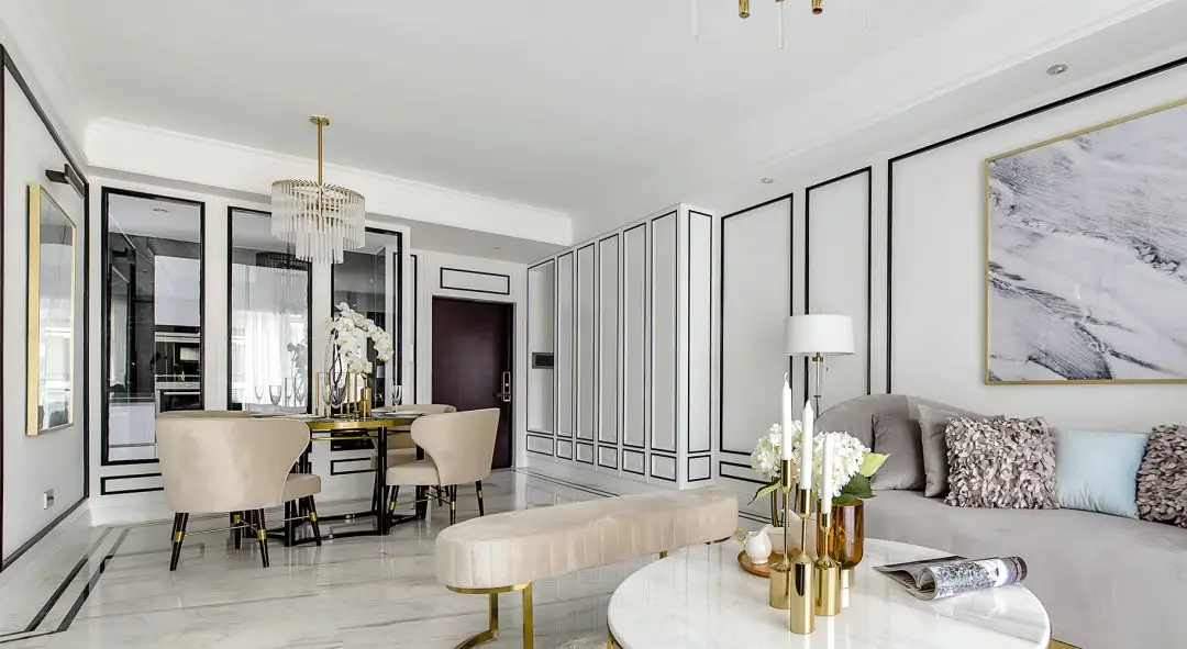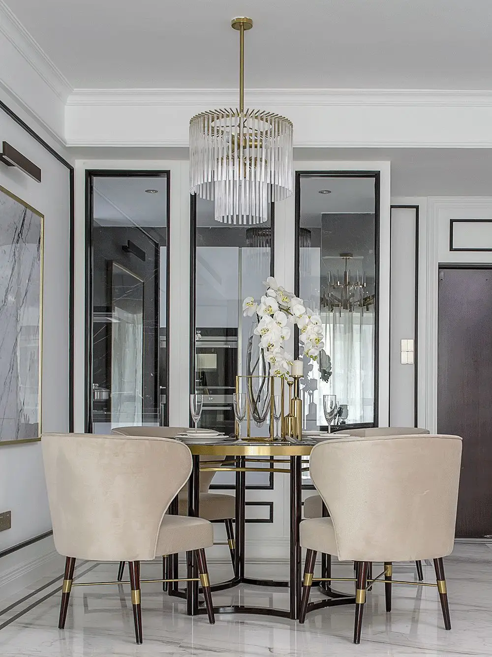现在最火的轻奢元素,莫过于黄铜和大理石这对热门cp了。黄铜的高级质感搭配大理石的温润内敛,在视觉上可以形成一股极强的艺术张力,轻松打造一个时尚精致的现代家居。
