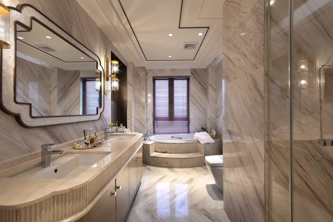 卫生间浅色石材萦绕空间四维,大气而不失时尚,完美演绎生活的篇章。