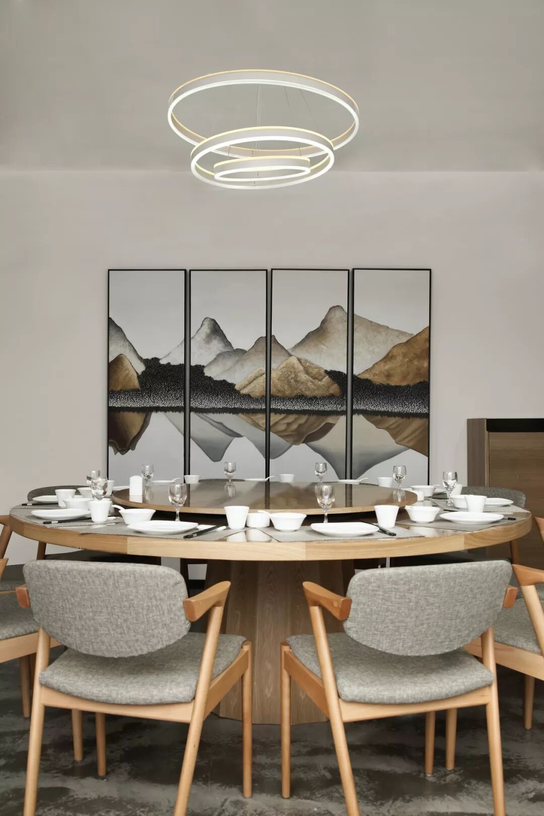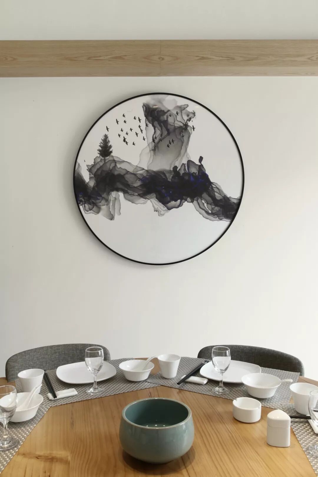 恰到好处的留白,可以有效舒缓空间布局,寥寥数笔,泼墨写意,令方寸之间自成天地,不经意中便可产生虚实相生的视觉效果,给观者带来无尽的想象。