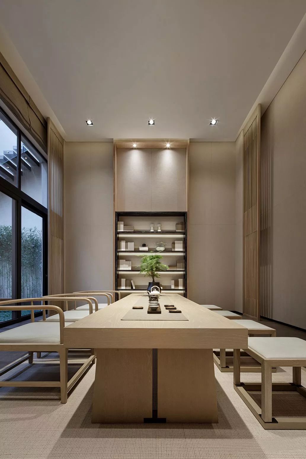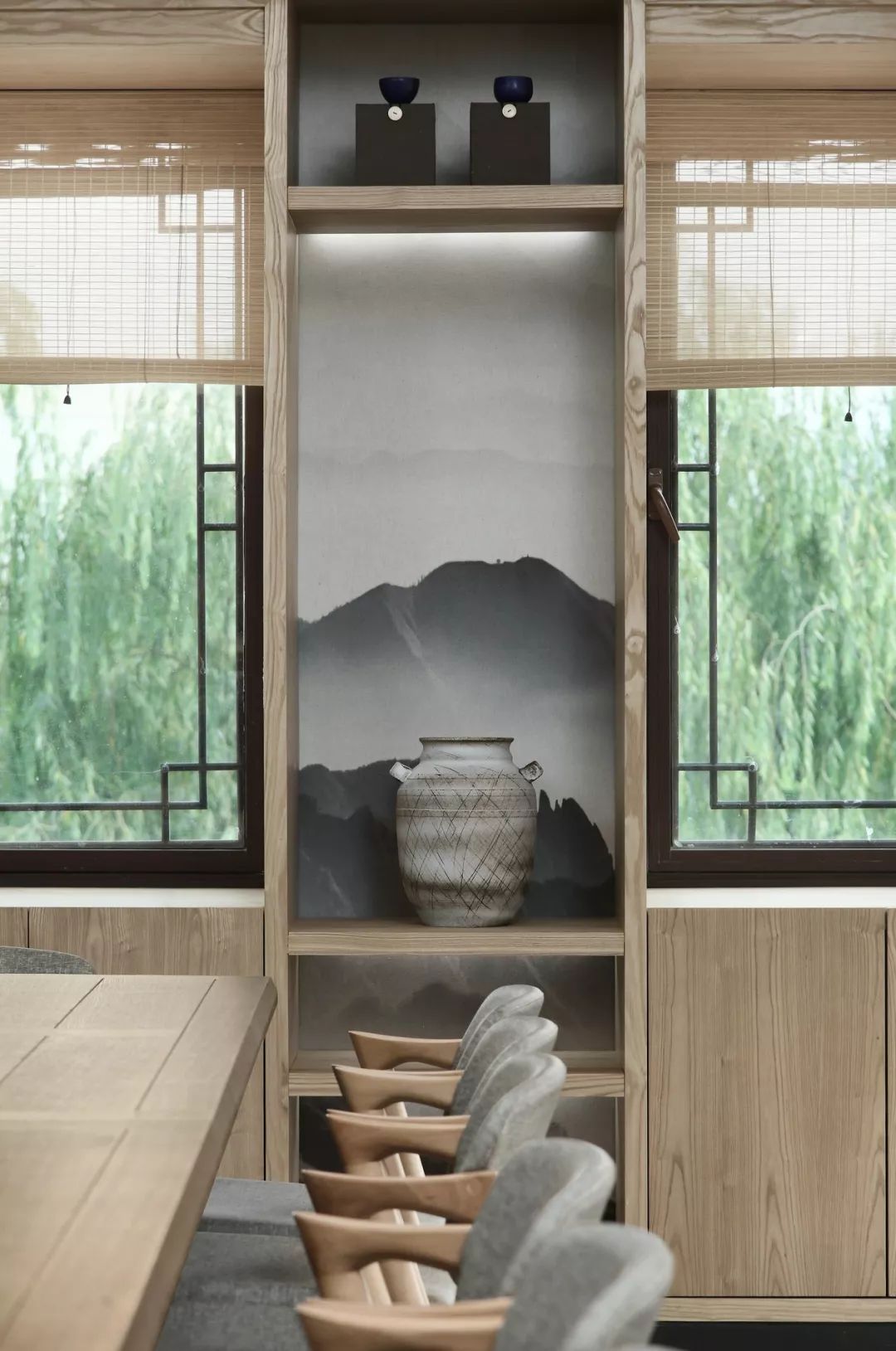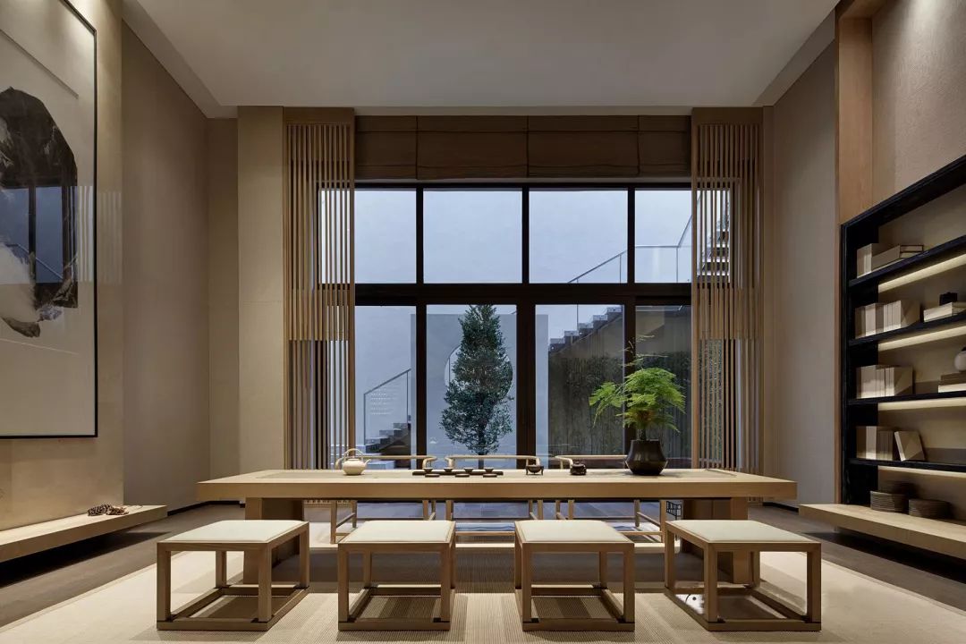 朴素的茶室空间,体现的是一种简单,真正的平静,不是避开车马喧嚣,而是在心中修篱种菊。就像林语堂曾说:“只要宅中有园,园中有屋,屋中有院,院中有树,树上见天,天中有日。”