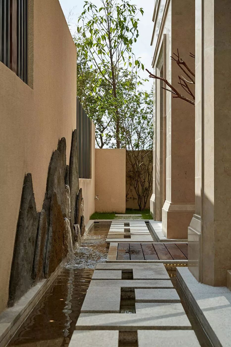 风景园林是中国文化的瑰宝,所以入口处设置了水体,与景观相结合,面山临水,凸显入户的仪式感。而水、砖、树木,也都是生活本质的表达。