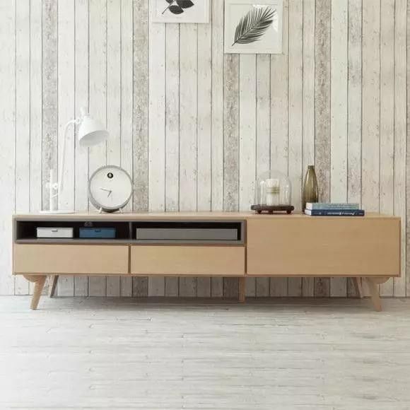 ▲ 原木背景墙和长抽屉,线条减到最少,颜值升到最高。