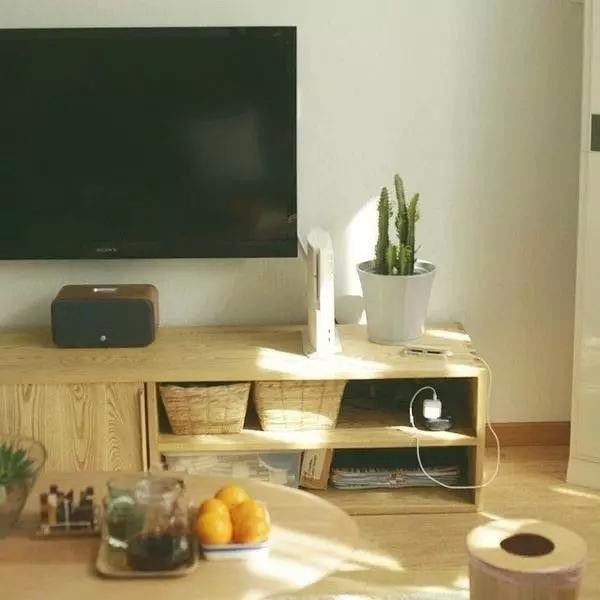 ▲ 小客厅小墙面也要轻松hold住电视背景墙,做不了背景柜还可以用隔板代替~下层隔板还兼具收纳区隔,简直完美~
