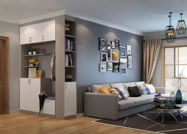 中国人有很强的隐私感,不希望别人一眼看到自己的卧室和客厅,所以在没有玄关的状况下,把鞋柜摆在客厅和入门之间是非常必要的,鞋柜不仅承担了玄关的作用,而且还非常的实用。如下图: