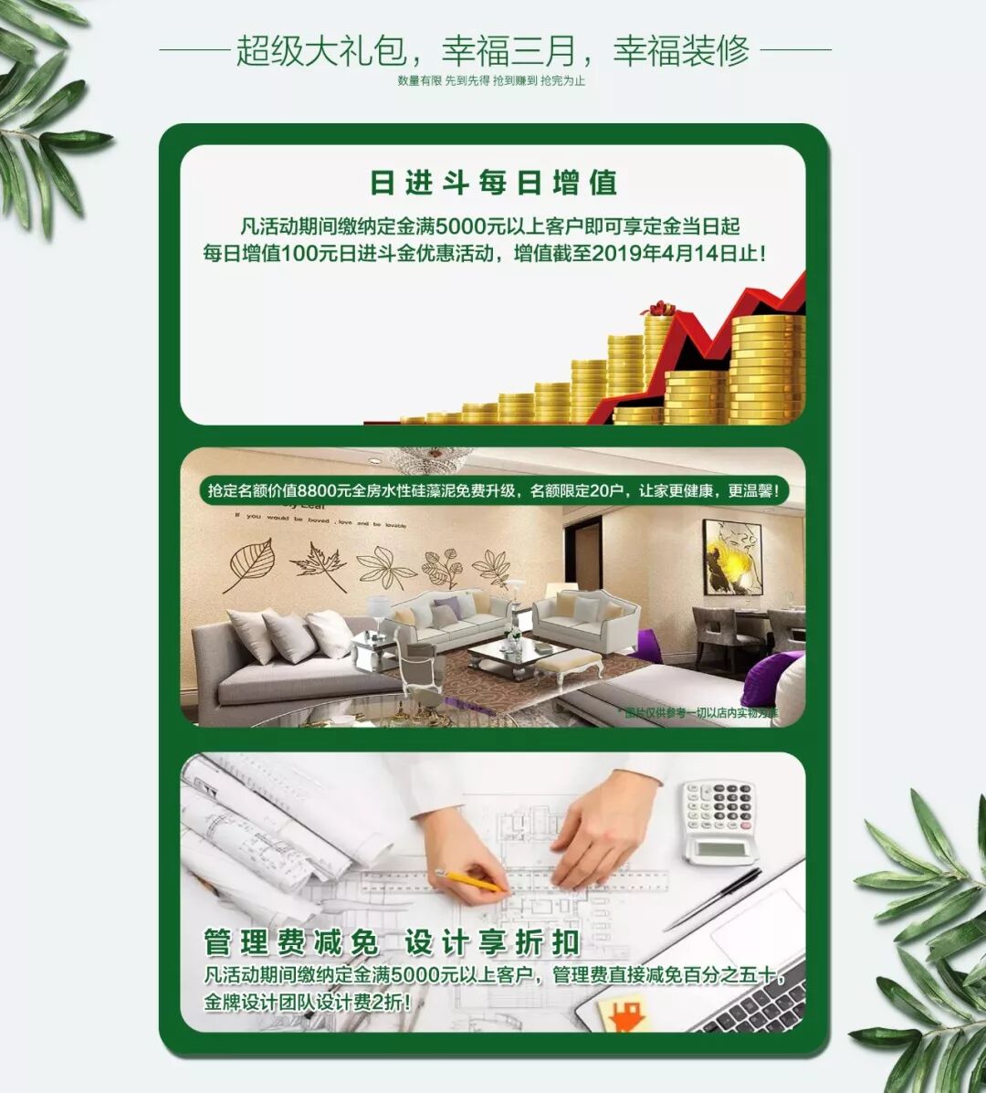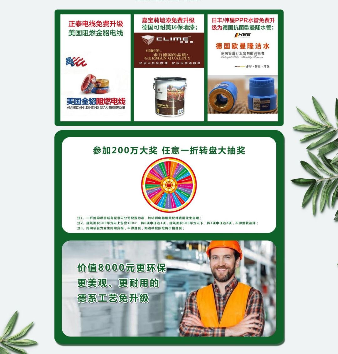 幸福装修季活动期间样板间征集礼下定即可进口主材辅材升级,200万大奖,任意1折转盘大抽奖