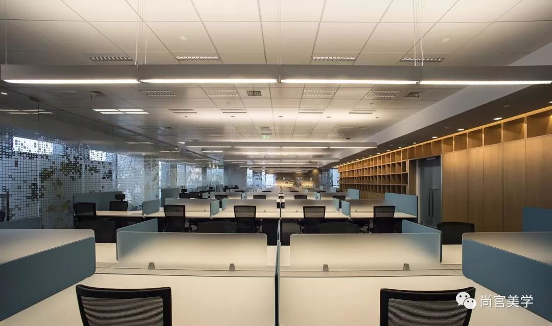 整齐划一的办公桌,设计师划分功能区域时,不忘将空间最大化利用。区域与区域之间相互区分又相互联系。