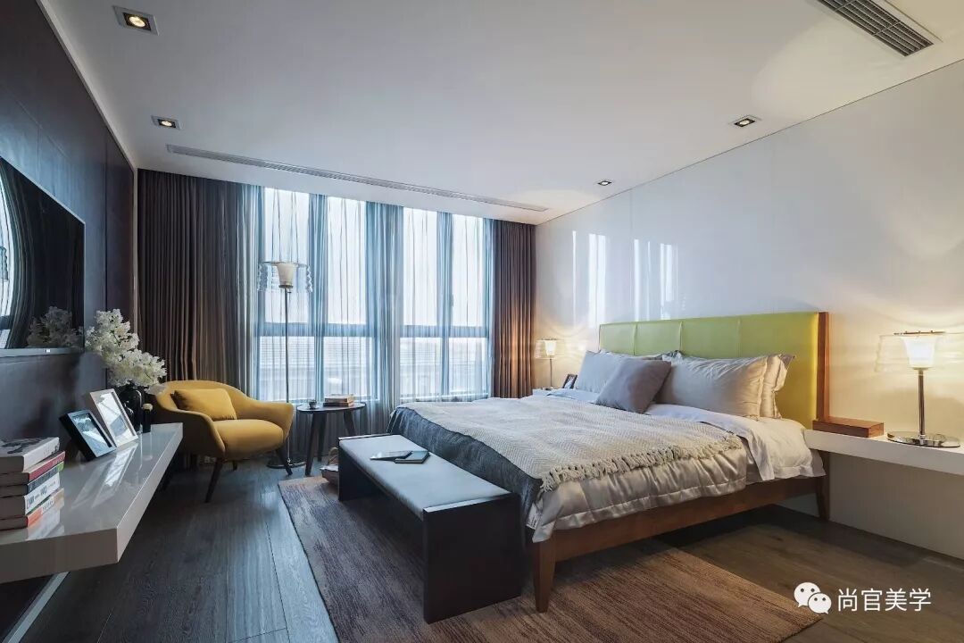 The furniture with simple lines and design is preferred. Apple green and ginger yellow inject the freshness into the whole space.