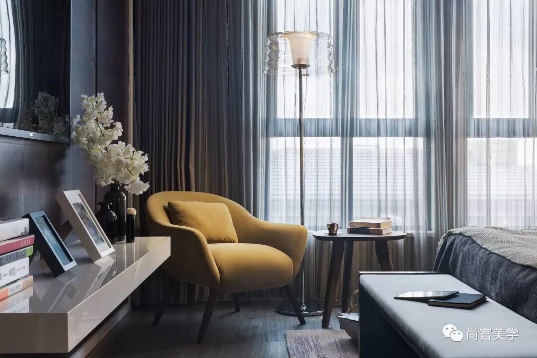 考虑到家庭人员配置,摆放两张单人扶手沙发,留出更多自由活动的空间。