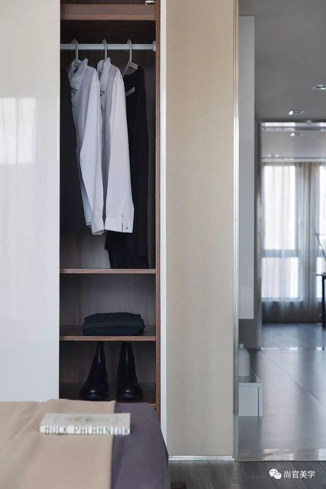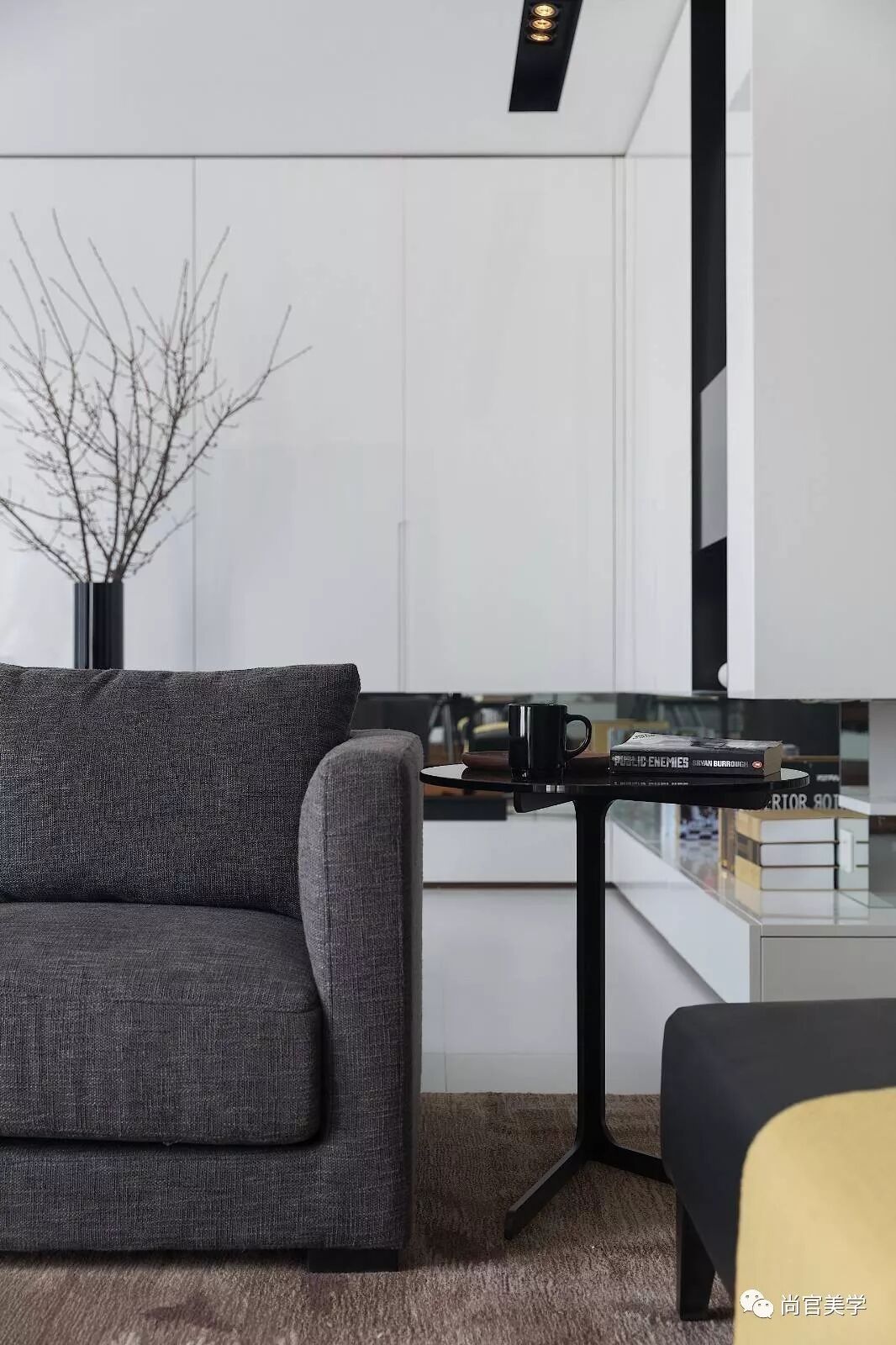 设计师别出心裁,将白色整面柜中其中一条不做门板,黑色夹杂白色中,简约的优雅感油然而生。
