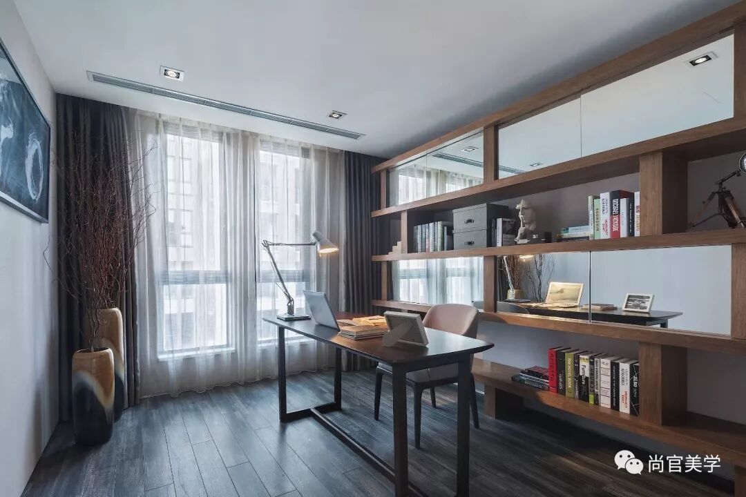 使用镜面作为书架推拉门板,错落有致的间隔,或放书籍或置物,皆相宜。