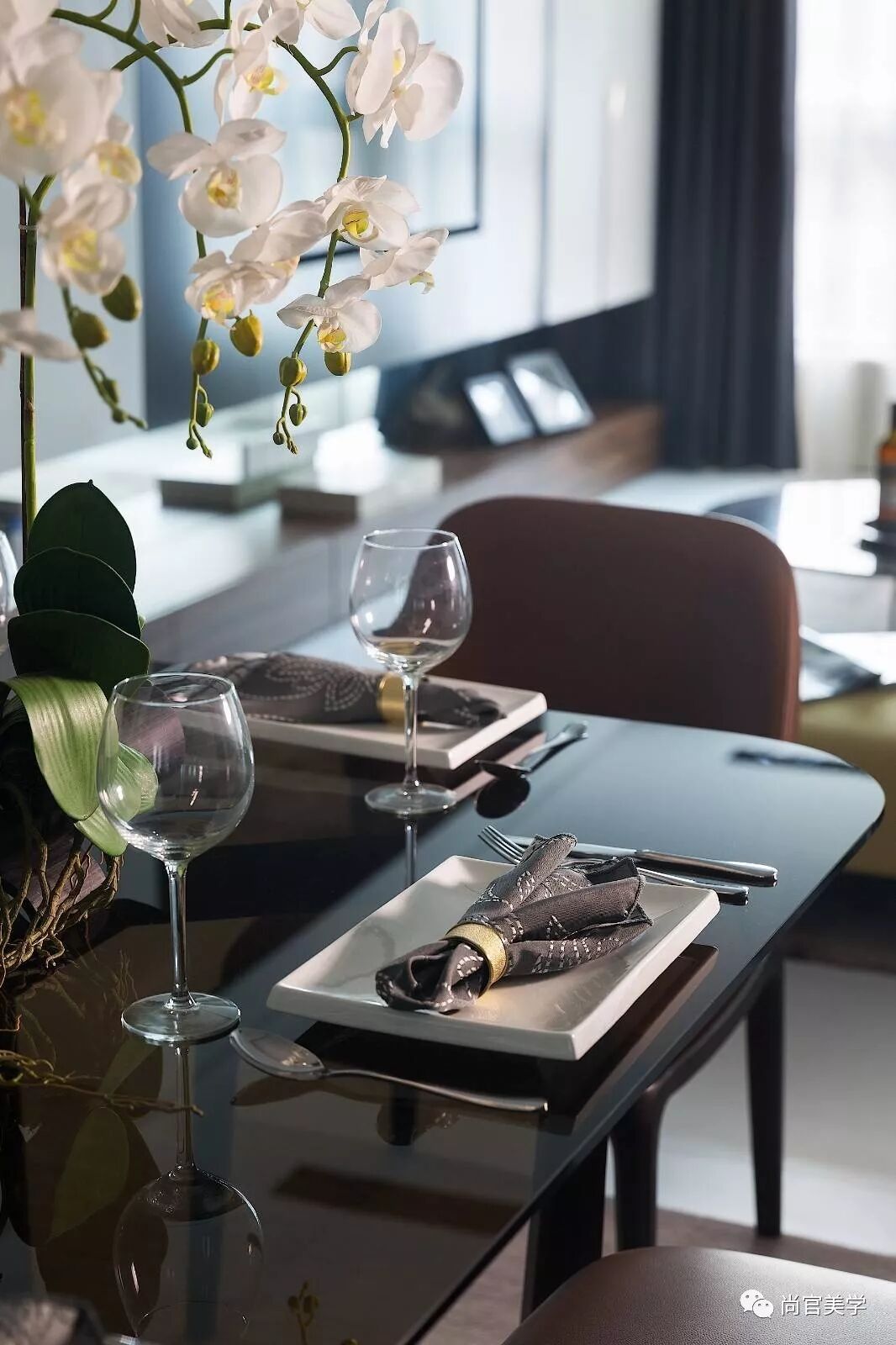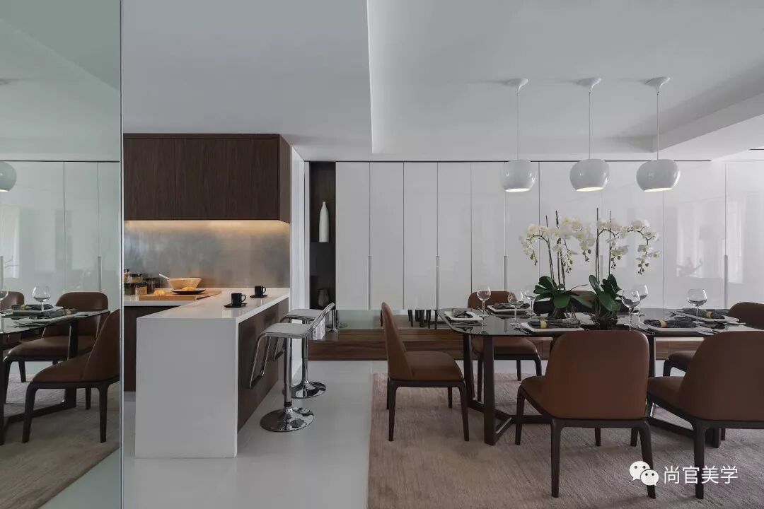 餐桌和餐椅选用深棕,与厨房柜子颜色相呼应。