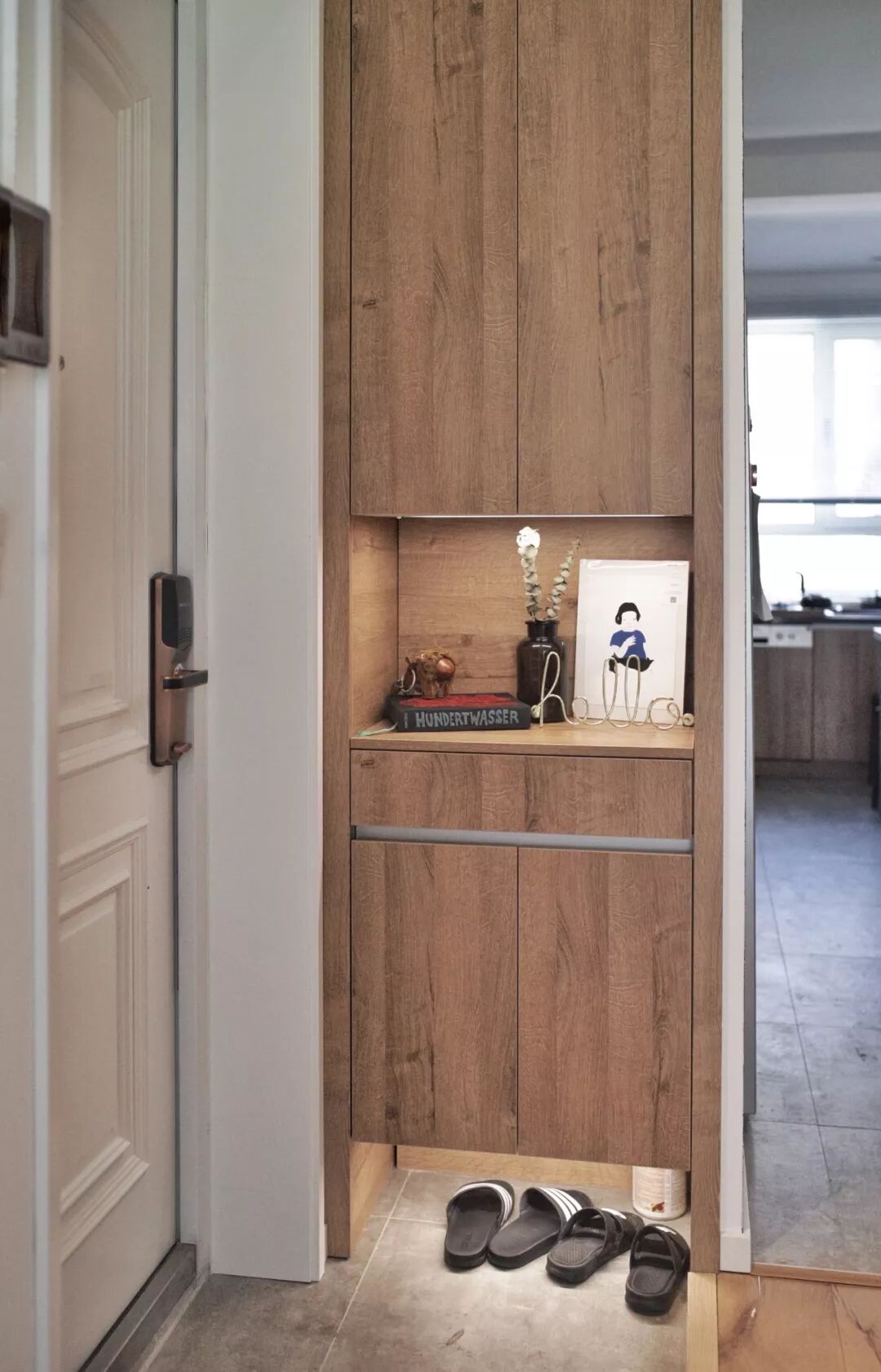 看,一个造出来的小玄关,该想到的都想到了,啥功能都没缺失。