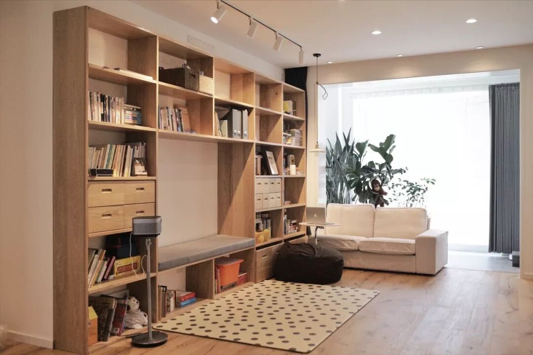 所以客厅要尽可能地“空”,除了一面书架,没有任何大件家具。