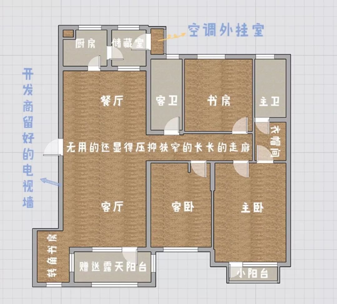 这个房子最初不是户型方正毫无瑕疵,相反有很多棘手的问题: