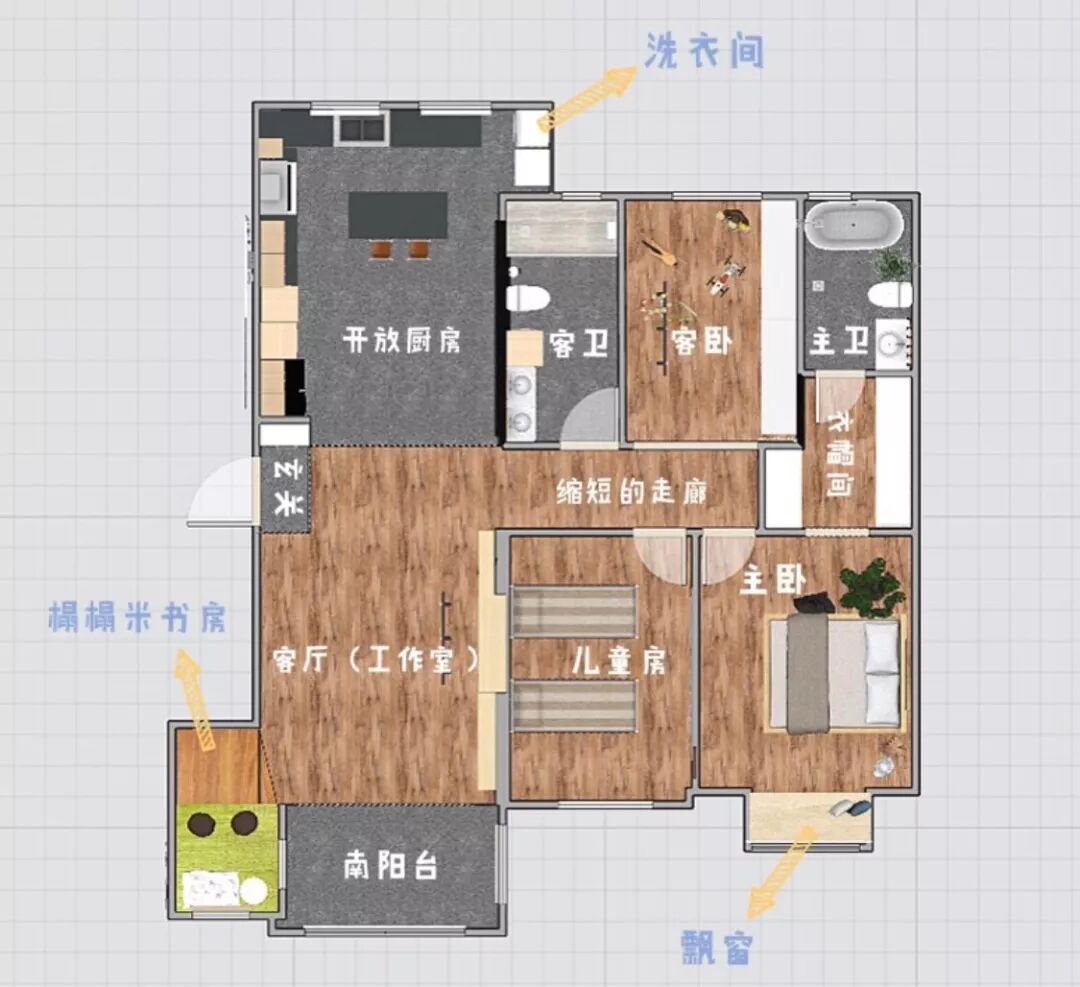 想让一家人更多地在此交流,包括陪孩子做作业;