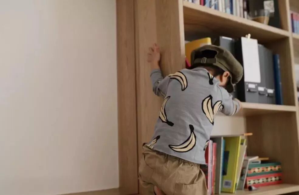 书架既可以放书,又能收纳零碎小物,下面两层放着孩子的书和玩具,无需大人帮助,自己就能取放。