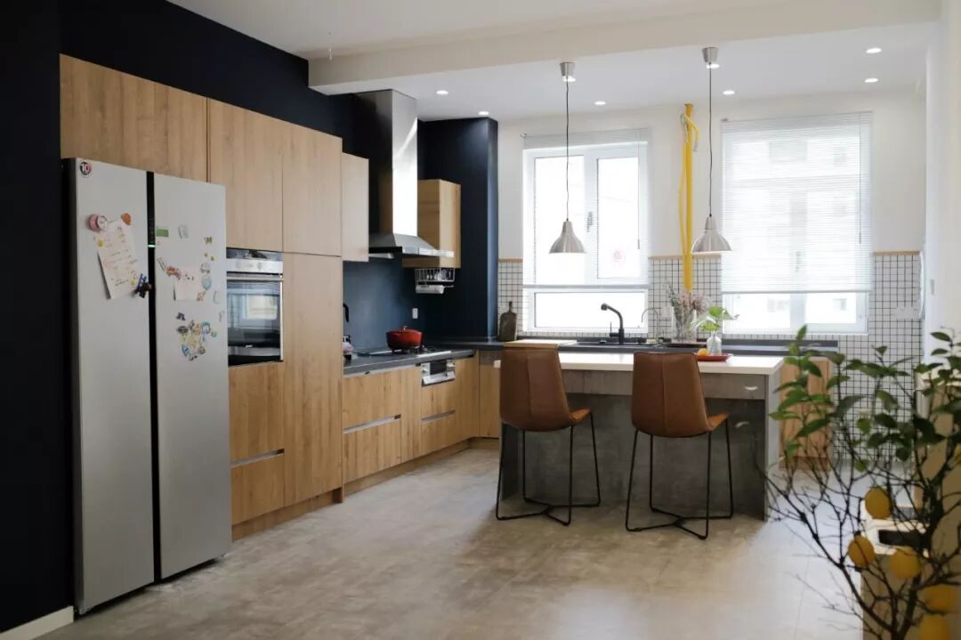 不仅因为喜欢开放式厨房的样子,更重要的是开放式厨房视野开阔、无视线盲区,做饭的时候也能照看到孩子,Singgie说作为俩娃的妈妈,这太重要了。