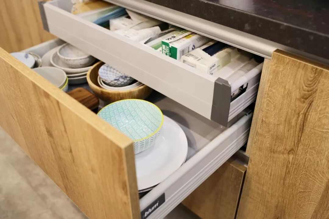 下柜基本都做了抽屉式,相比平开门抽屉,更方便实用,空间利用率更高,这个之前我们也介绍过。