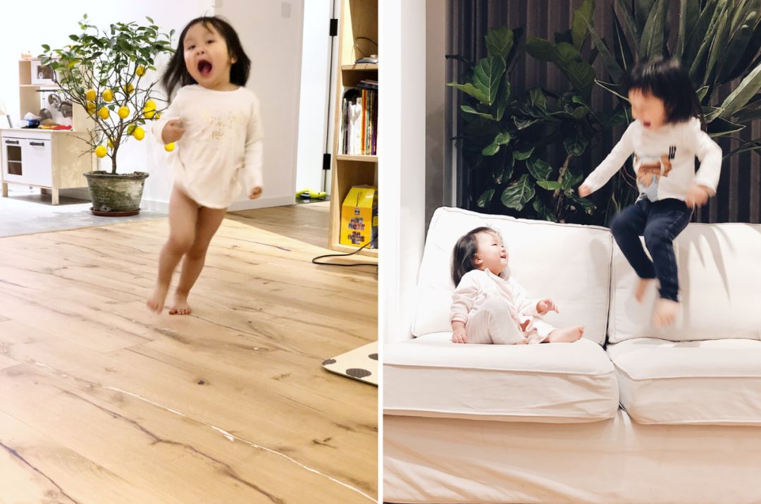 看到两个孩子在客厅又跑又玩很开心,这是大概是当妈的最想看到的情景了。
