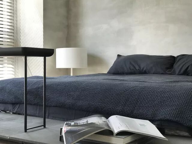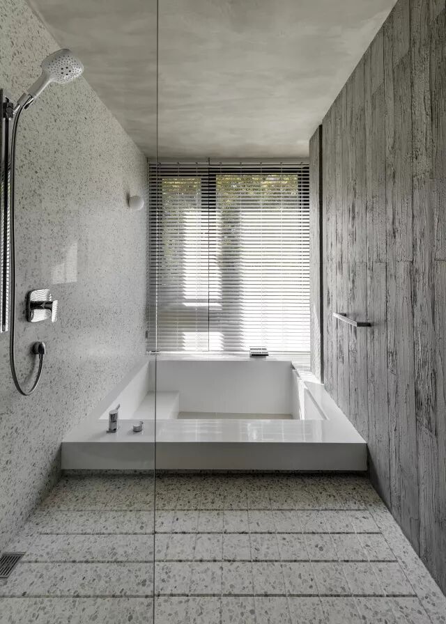 运用不同样式的家具,除了打破空间的限制外,天花板上的长方口字形及一字型的特殊造型灯具还涵盖了不同的空间,且赋予了不同的照明功能。冥想、砌茶的和室空间,将窗外的原生树引景入室。以灰白水泥质感为基底辅以温润浅木质的主卧房,简易、雅致,整个空间透露著一份淡淡的谧静氛围。而客用浴室,以暗黑色呈现。具纹理质感的马来漆,自然成型的胡桃木实木桌面,在铜质结构的支撑下,悬浮于空间中。