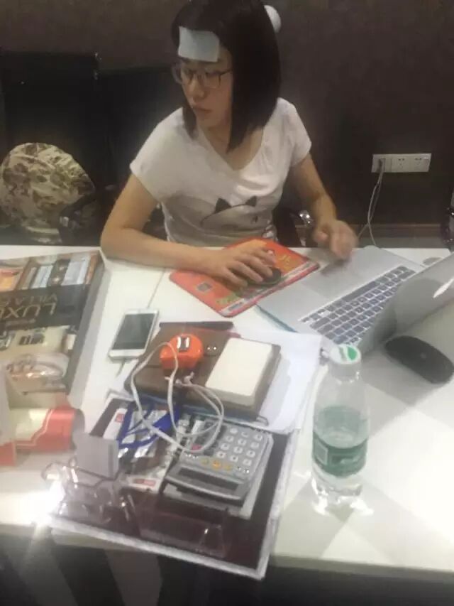 ▲再来看看我们这位朝阳店杨筱莉设计师,带病上班!高烧不退,无奈答应客户的方案还是要准点交付!