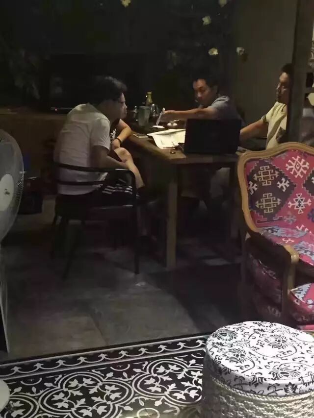 ▲看图片中这几位,不了解情况的还以为在搞什么深夜谍战,其实是客户从外地坐火车赶来南昌,丛一楼恒茂店设计总监李灵刚和市场主管黄志魁与客户共同谈至深夜,终于成交。