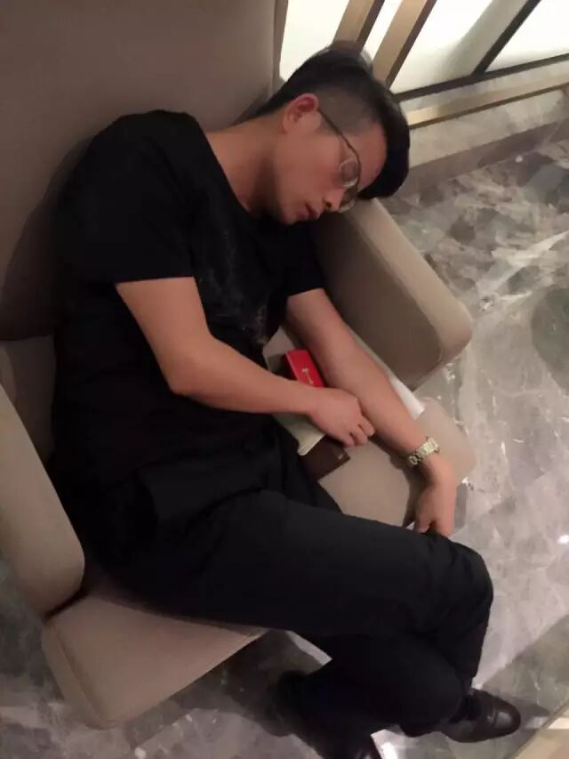 ▲这是哪位呢?这是我们丛一楼装饰的朱总!这个睡姿在幸福宅大设计活动当晚已然刷爆了朋友圈!唉,老板太累啦!活动前一天通宵安排布展,但依然坚持巡守完整个活动至结束,在小伙伴们撤展时,发现朱总已累趴在活动现场。