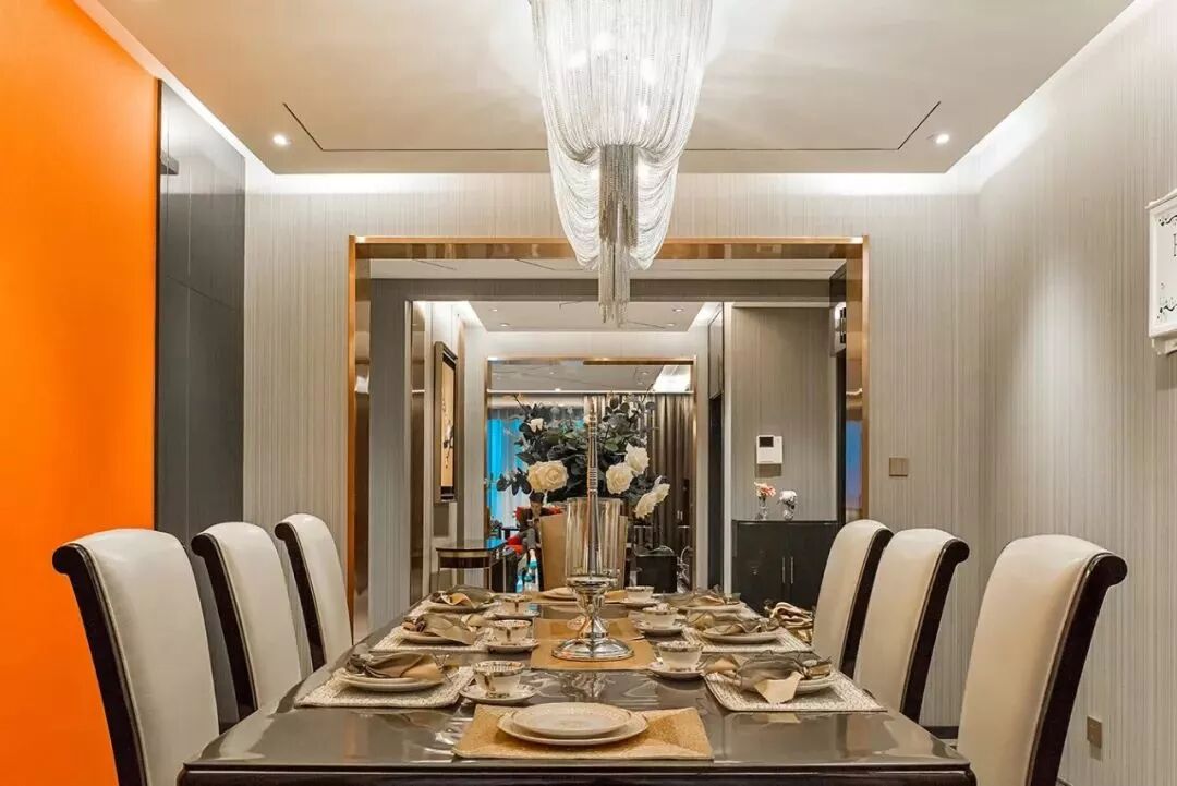 整体软装配饰以硬装为基调,配以阿玛尼品牌的家具,嫁接国际品牌的家具的设计感,打造理性的生活空间。