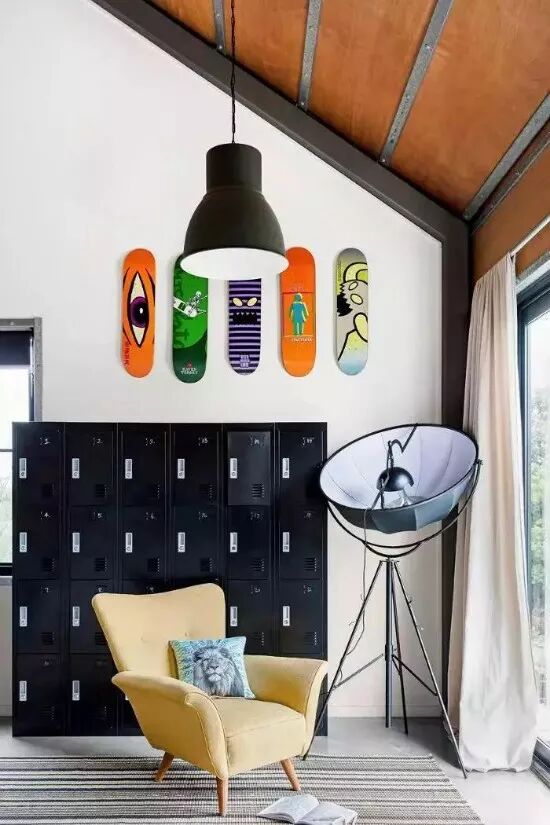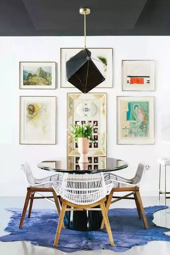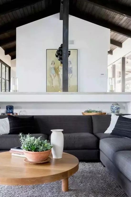 你的空间里没有任何引人注目的建筑细节吗?你的天花板够高吗?有人可能认为把天花板涂成黑色会让它看起来更低,但事实恰恰相反。在这个好莱坞公共公寓里,天花板被漆成纯黑色,给原本是“白色盒子”的空间带来了宏伟和生气。