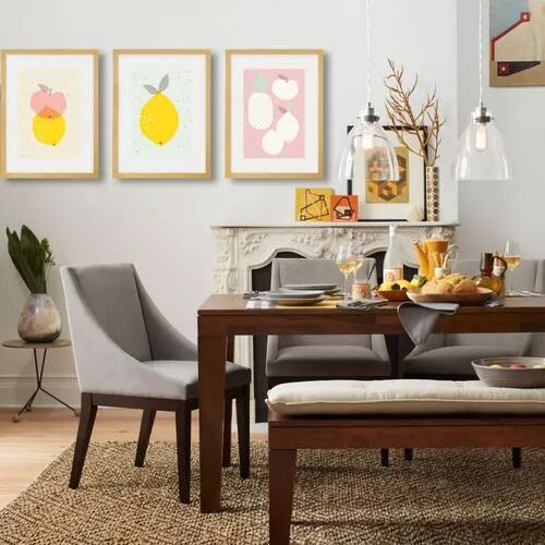 1、水果、蔬菜类的餐厅比较适合餐厅这个空间,水果和蔬菜颜色清新,让人增进食欲。以花卉为主题的抽象绘画也是一种流行的餐厅壁画。