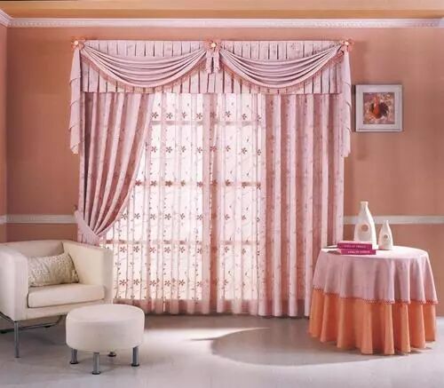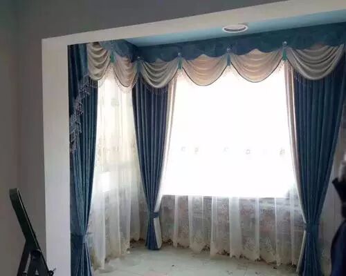 3、窗纱的色彩比较轻快,但透视性太强,可以在窗纱后加一层底布。根据自己需要,可以做在一起,也可以分开。