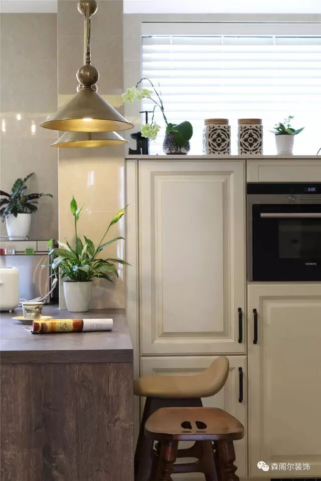 开放式厨房的设计,让家人间能够进一步沟通,特色的木质吧台,再次将自然融入生活。
