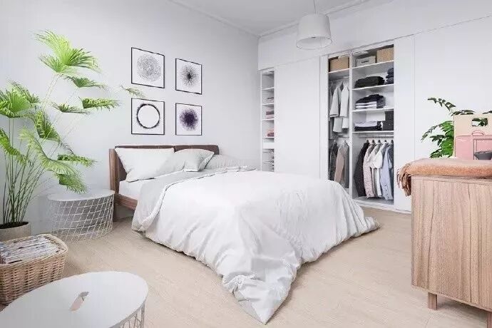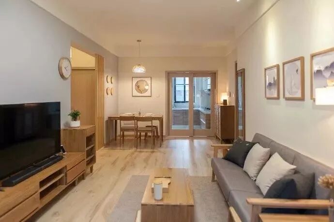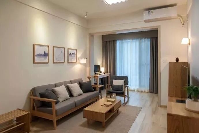 日式原木风在清新自然、简洁淡雅基调上,涓注了更多文化韵味,同时非常注重收纳设计。材质上一般以木制为主,采用清晰的线条,有较强的几何立体感。